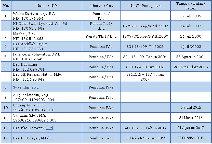Sejalan dengan perkembangannya SMP Negeri 17 Kota Bogor telah mengalami penggantian Kepala Sekolah sebagai berikut :